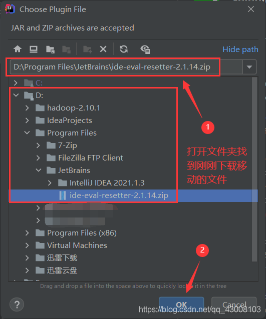 把下载好的ide-eval-resetter-2.1.14.zip放到D:\Program Files\JetBrains防备误删