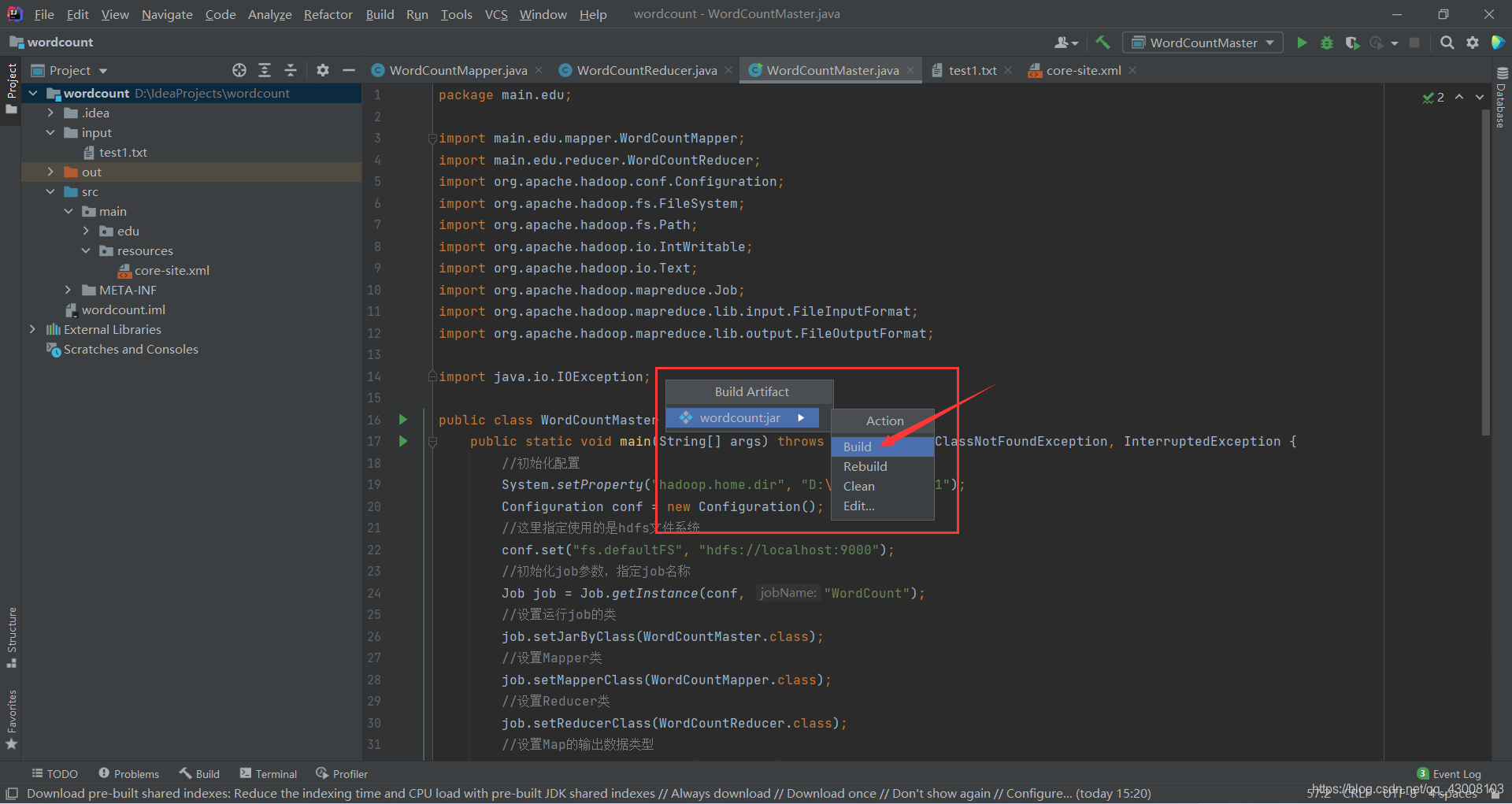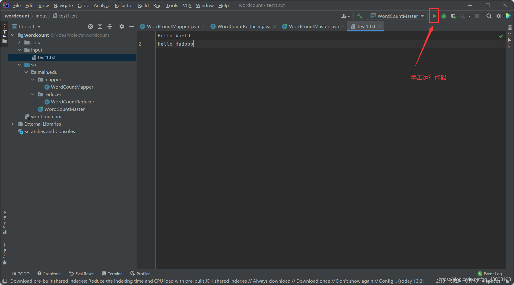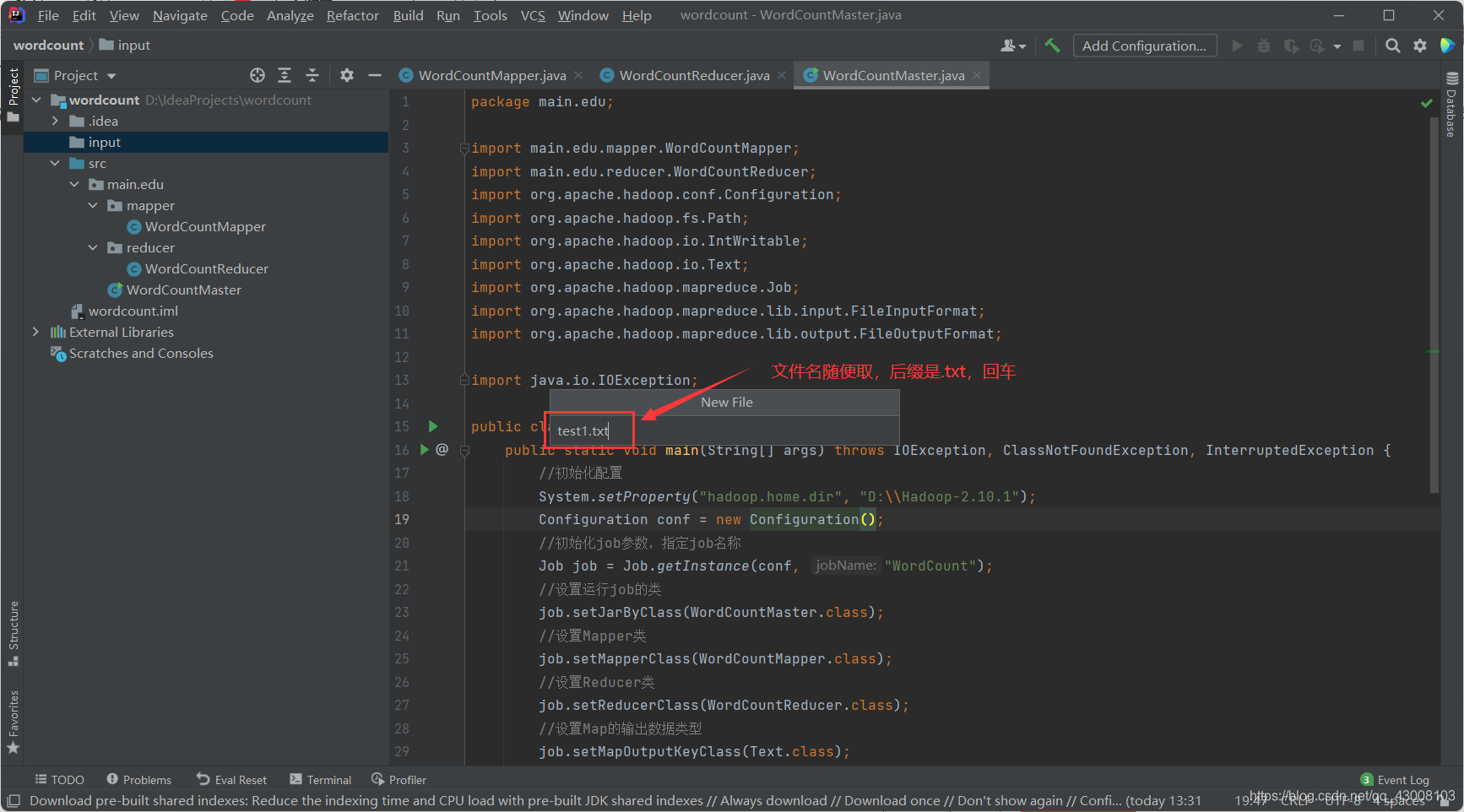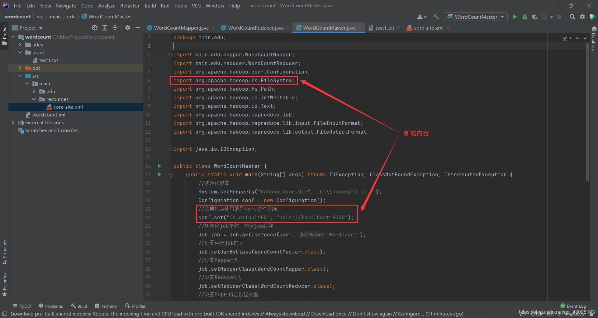 修改WordCountMaster.java的代码