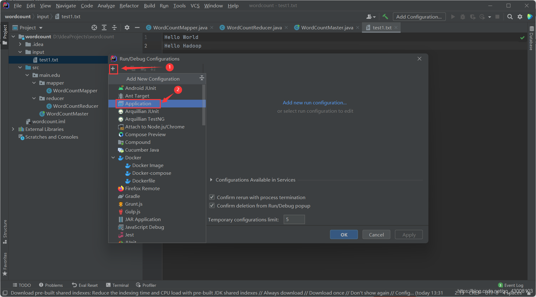 这样就可以使用intellij来开发hadoop程序并进行调试了。