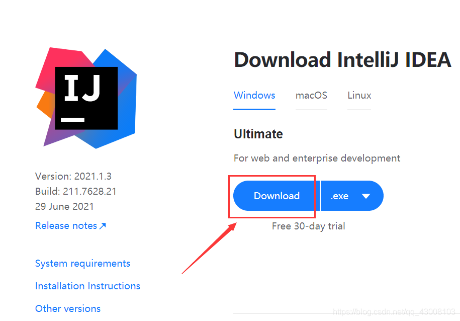 去IntelliJ IDEA官网下载https://www.jetbrains.com/idea/download/#section=windows