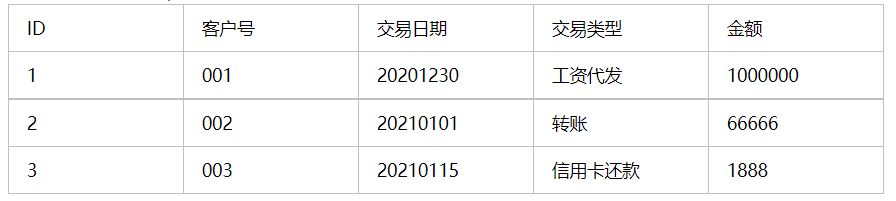 先了解一下几个概念,如下有一张表  查询某个客户在哪个时间进行某种交易的金额,这种是多维分析,其中客户号、交易日期和交易类型是维度(Dimensions),金额是度量(Measures)。 根据表格中三个维度一个度量,可以画出如下图形