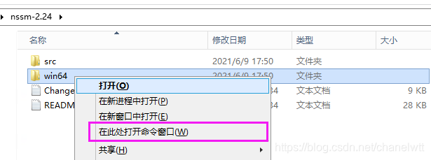 #鼠标点击win64文件夹,摁住shift键,然后右键->打开命令窗口