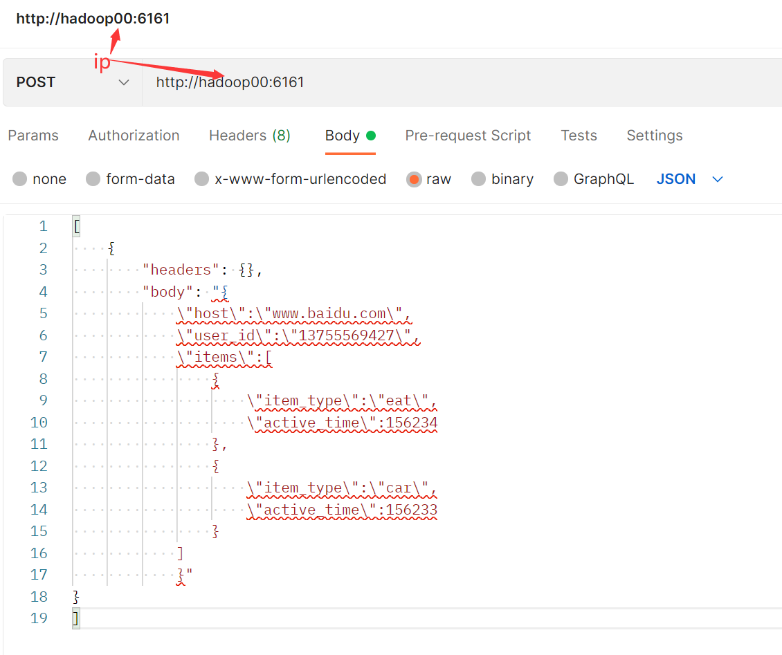 注意:由于http协议需要发送请求所以要有headers与body不能直接写json: