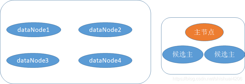 - 优点:主节点和候选主节点构成主节点集群(暂且这么叫),是集群管理与数据操作完全隔离;数据节点和主节点可以选取不同的机器配置;单点故障进一步降低;
