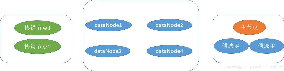 - ?为了解决数据节点读写压力,集群引入协调节点,集群变成如下形式