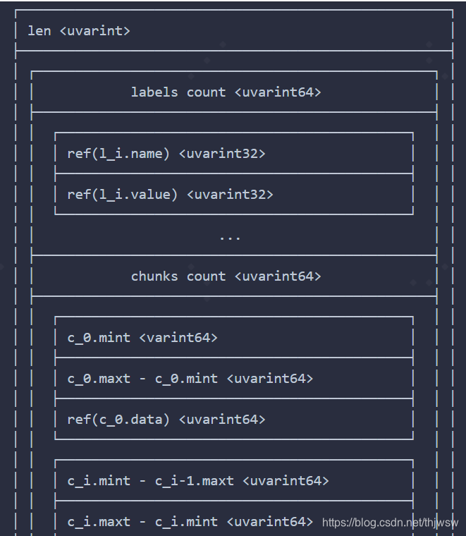 比如举例中有3个标签信息,那么labels count就是3。注意这里不包括metric name信息。具体的每一个label中,name和value,存放的是对应string在symbol table中的索引。