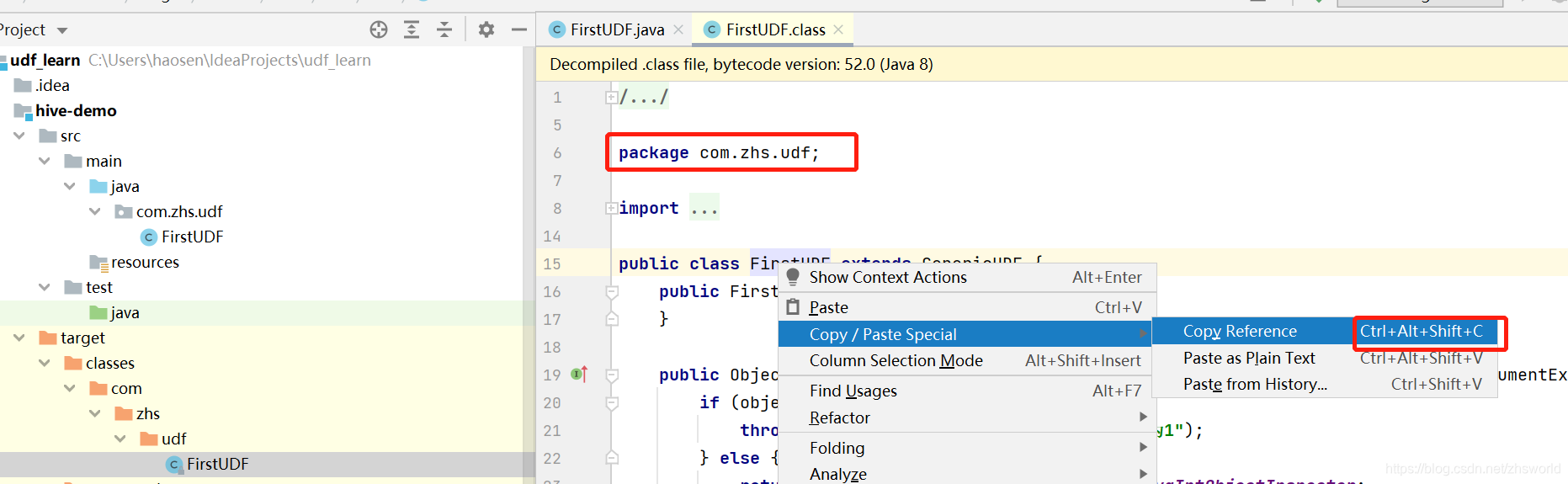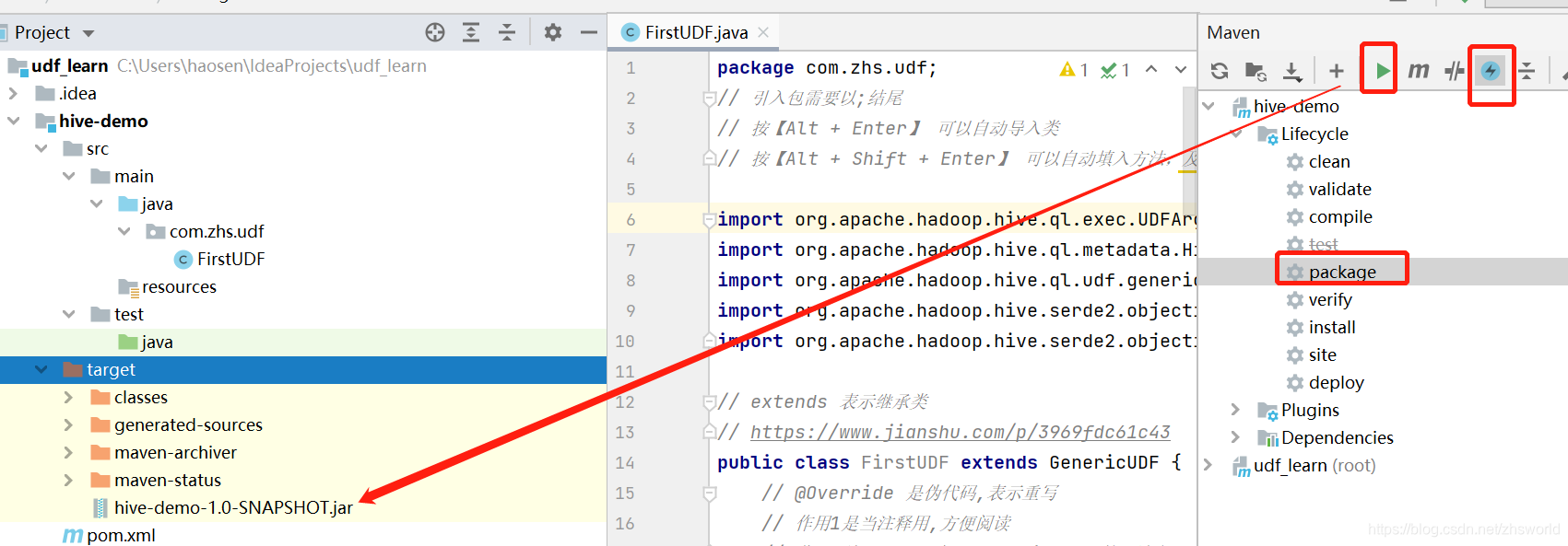 </dependencies> 3.新建一个类(com.zhs.udf.FirstUDF)