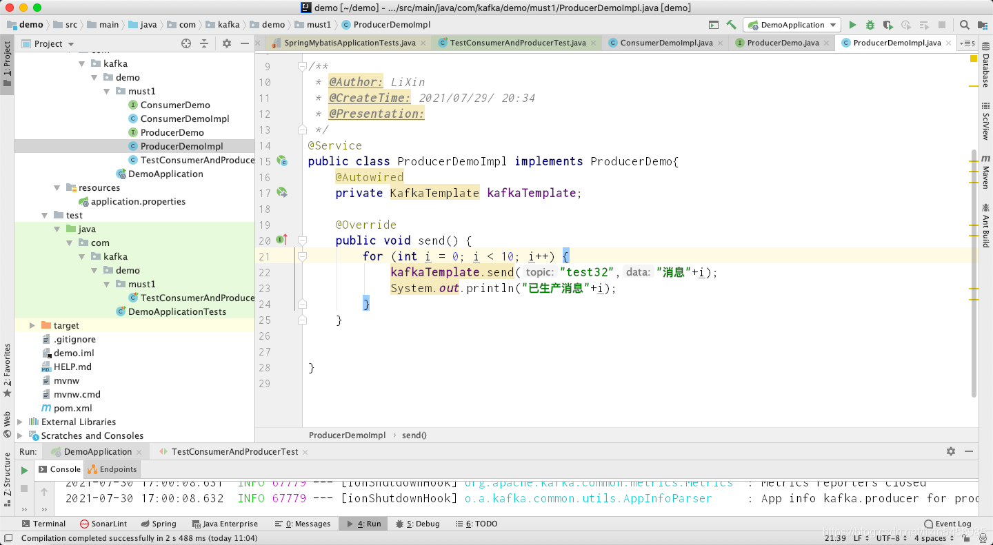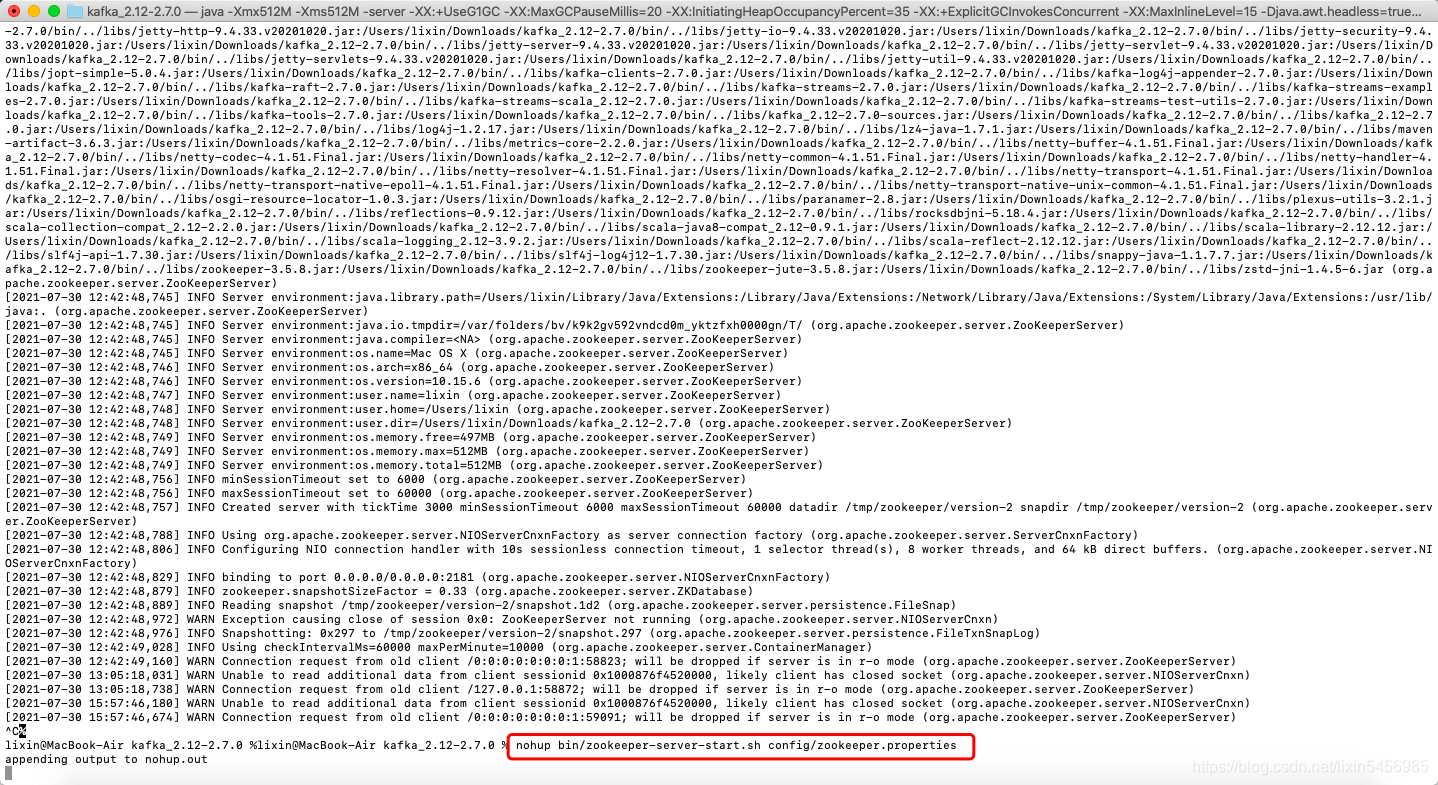 ?5.打开终端,进入kafka_2.12-2.7.0文件夹下.输入命令: