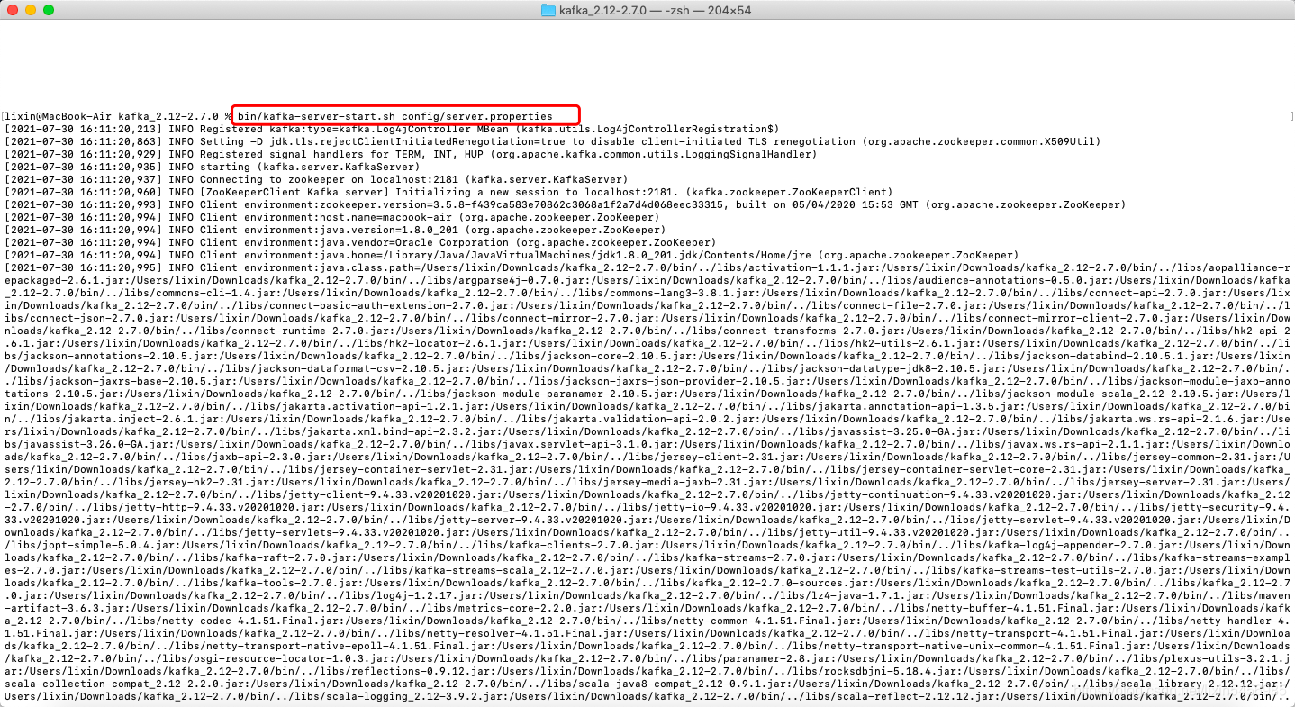 6.启动kafka,使用:bin/kafka-server-start.sh config/server.properties命令