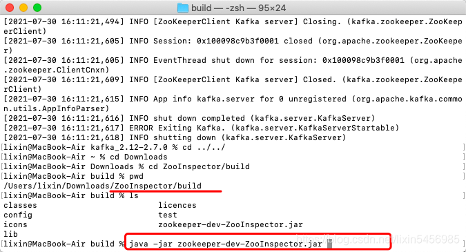 2.下载完成后从终端进入到ZooInspector/build目录下启动zookeeper-dev-ZooInspector.jar