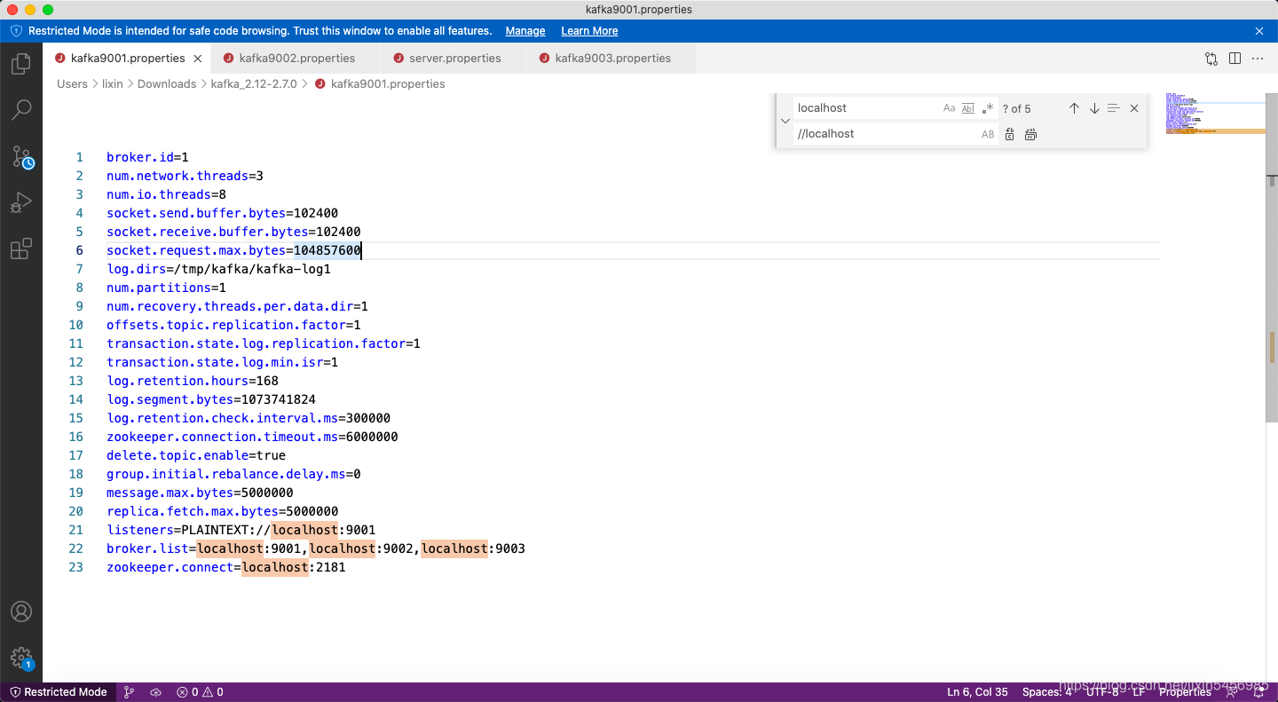 broker.list=localhost:9001,localhost:9002,localhost:9003
