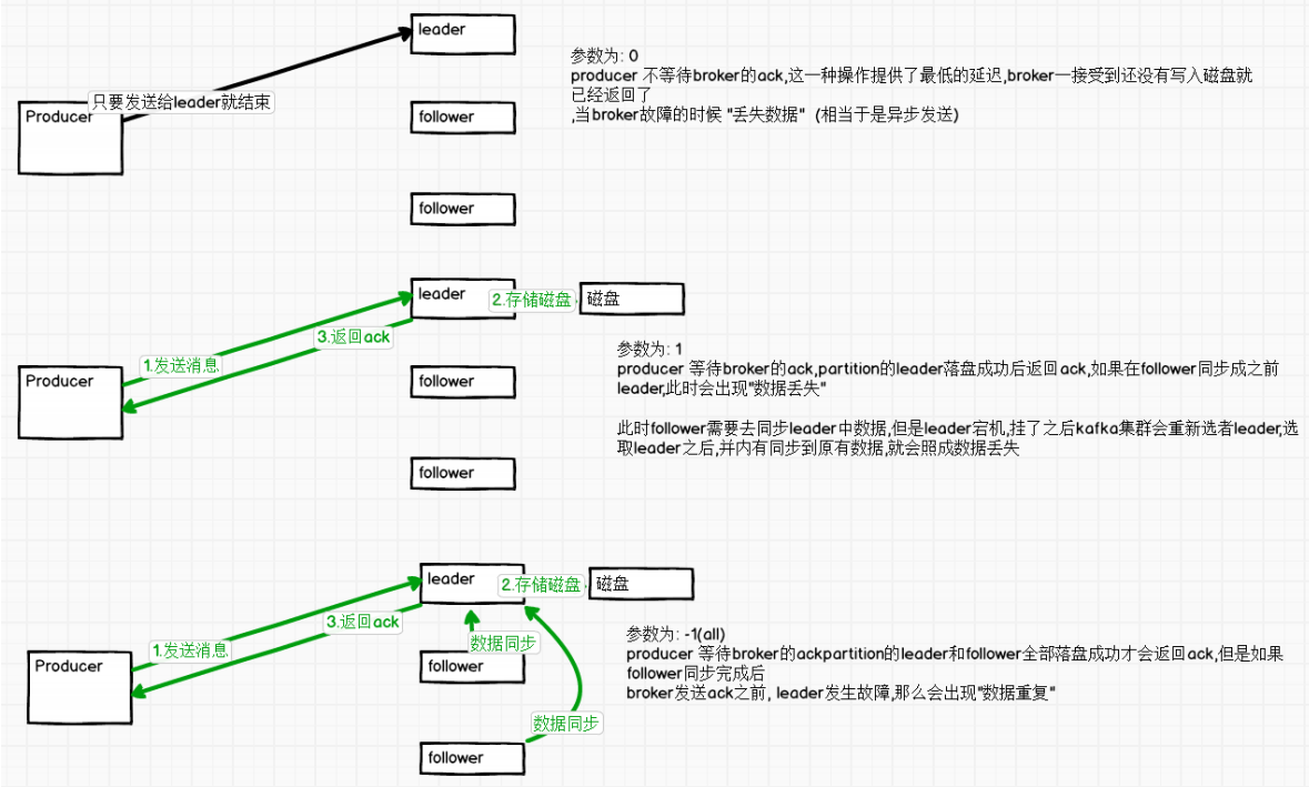 所以Kafka为了用户提供了三种可靠级别设置,可以根据不同雪球来修改选择acks参数配置:参数是0 ,1 和 -1