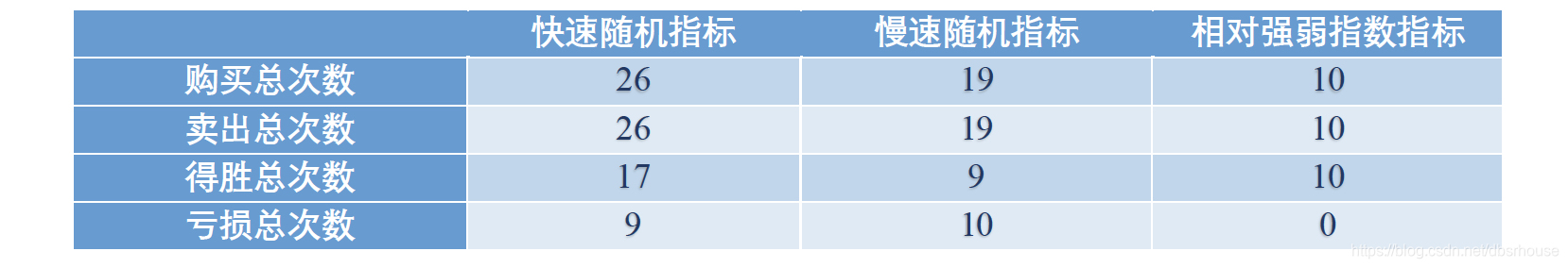????????下表是比较买入、卖出、赢和输的总次数。 相对强弱指数指标交叉交易策略有更好的表现。
