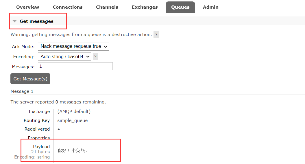 channel.basicPublish("", QUEUE_NAME, null, message.getBytes());