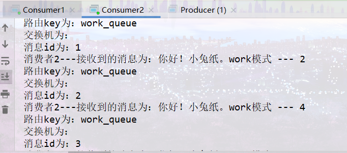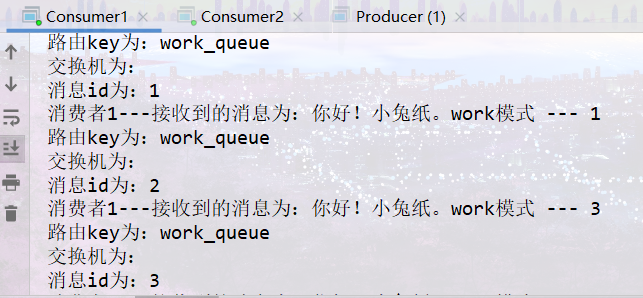 先运行上述测试程序(交换机和队列才能先被声明和绑定),然后启动消费者;在消费者工程springboot-rabbitmqconsumer中控制台查看是否接收到对应消息。?