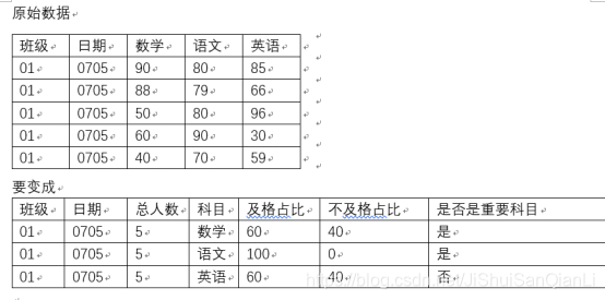| 学号 | 成绩 | | 001 | 90 | | 001 | 80 | | 001 | 95 |