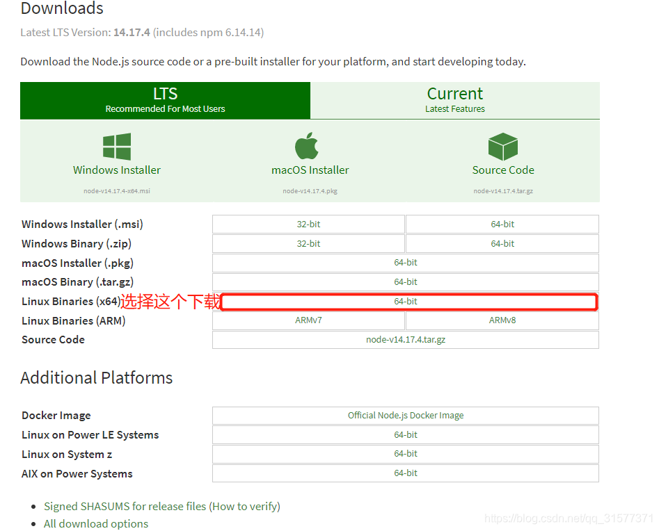 node下载地址:https://nodejs.org/en/download/?