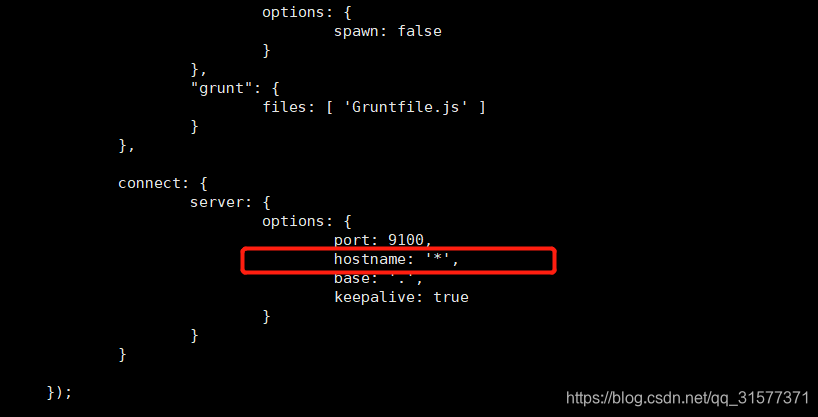 进入目录:es-head/Gruntfile.js,增加hostname属性,设置为*