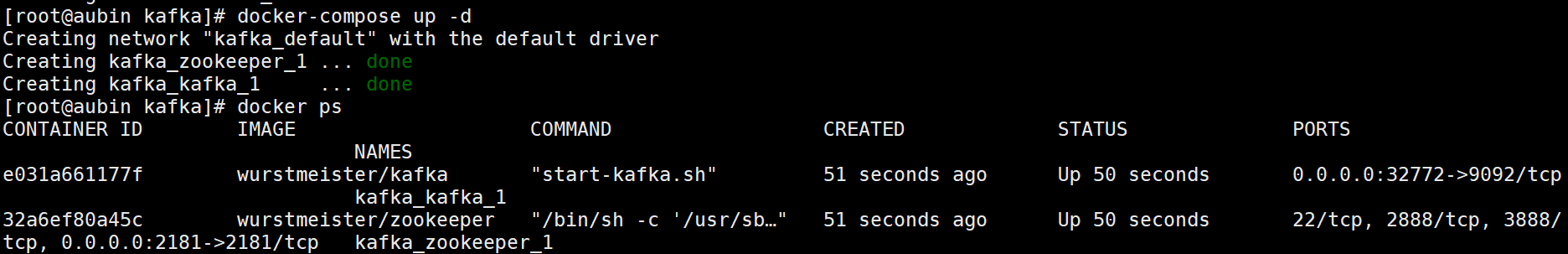 执行docker-compose up -d创建一组容器  执行docker-compose scale kafka=3将kafka实例扩展到3台