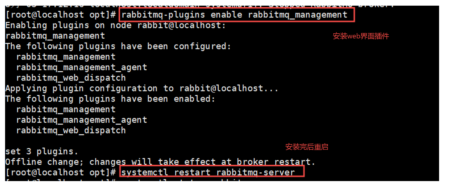 安装完毕以后,重启服务即可 systemctl restart rabbitmq-server