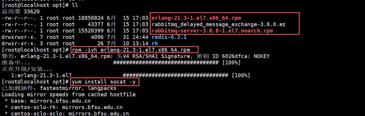 注意: RabbitMQ是采用 Erlang语言开发的,所以系统环境必须提供 Erlang环境 ,需要是安装 Erlang 在RabiitMQ安装过程中需要依赖socat插件 ,首先安装该插件
