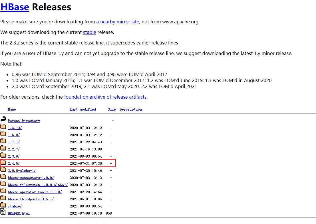 下载链接 https://mirrors.bfsu.edu.cn/apache/hbase/
