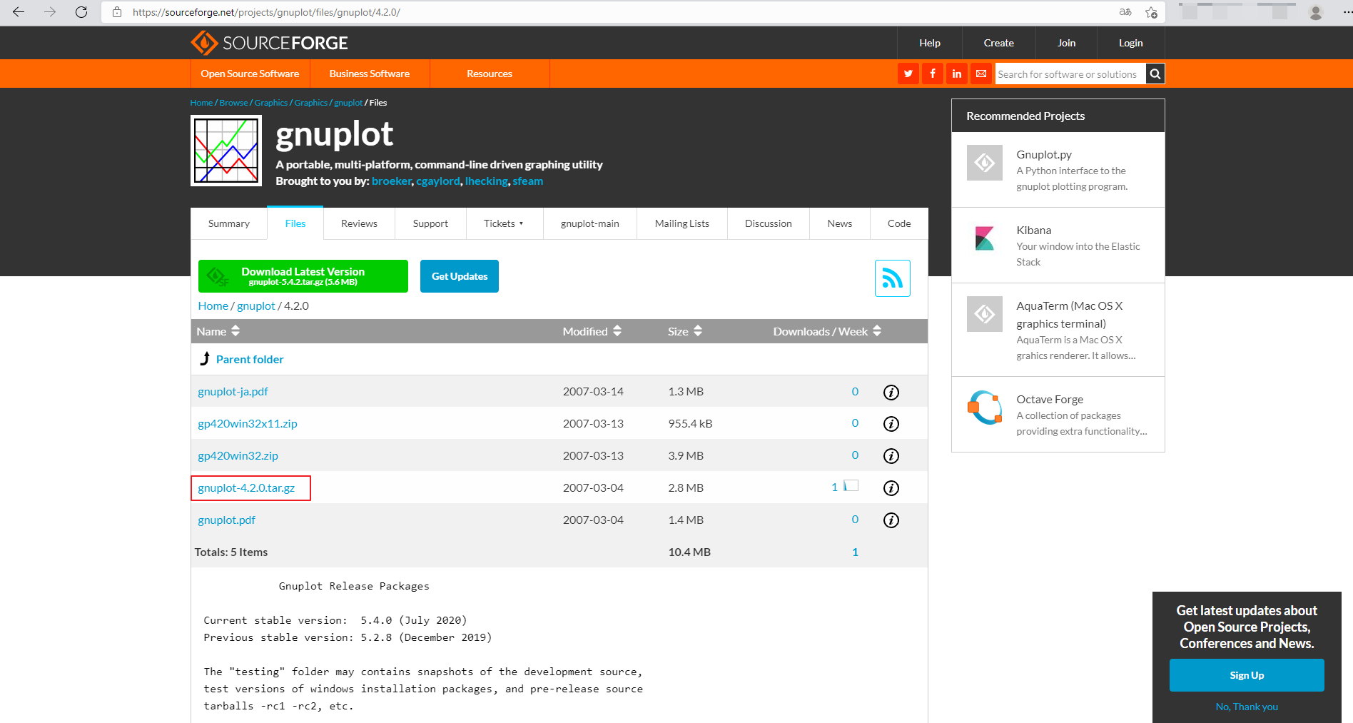 下载链接 https://sourceforge.net/projects/gnuplot/files/gnuplot/4.2.0/