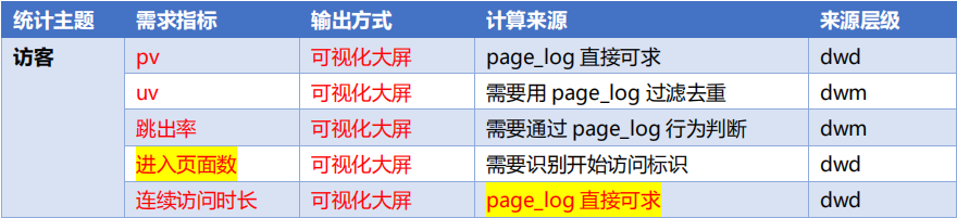 这几天复习计网的东西去了~~不定期更新 之所以单独将这个主题宽表拿出来讲,是因为他的设计过程非常具有代表性,可以参照这个表的设计方式去实现后续其他的主题宽表设计(后续有Flink Sql的实现过程、另讲); 在该系列的第一篇文章中,我已经提高了各个层的设计目的;DWS层在本项目中的主要作用是为了ADS层的查询和后续可视化设计的,算是数据接口的直接数据来源,所以这里对实时性的要求很高,否则你再这里算个几十秒的延迟,最后展示出来的数据结果实时性肯定非常差; 对此,DWS层的设计应该突出实时性要求,在这里,不应该出现大批量的明细数据,而应该是针对可视化所需的主题宽表数据;同时,我们选用clickhouse数据库来做一个实时查询,实际上在OLAP中clickhouse的优势是非常明显的,因为其单表查询的能力非常强,速度很快,而我们在这里最好了主题宽表之后,也不需要再做联表查询,正好适合clickhouse来发挥作用;  目前我们已经获得了访客主题宽表所需要的各个单表的内容,接下来就是分析具体这个主题宽表需要哪些字段了; 对DWS层的表而言,我们一般从两个角度来设计:维度和度量,这里我们这两个概念做一个简要介绍: