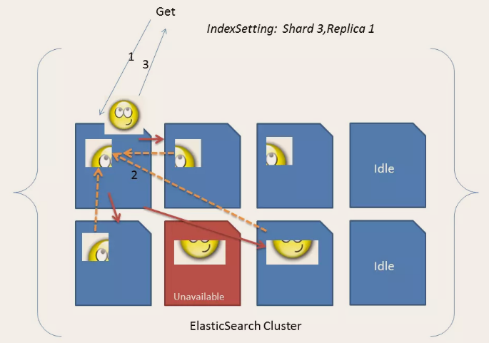 es 把数据分成多个shard,下图中的P0-P2,多个shard可以组成一份完整的数据,这些shard可以分布在集群中的各个机器节点中。随着数据的不断增加,集群可以增加多个分片,把多个分片放到多个机子上,已达到负载均衡,横向扩展。