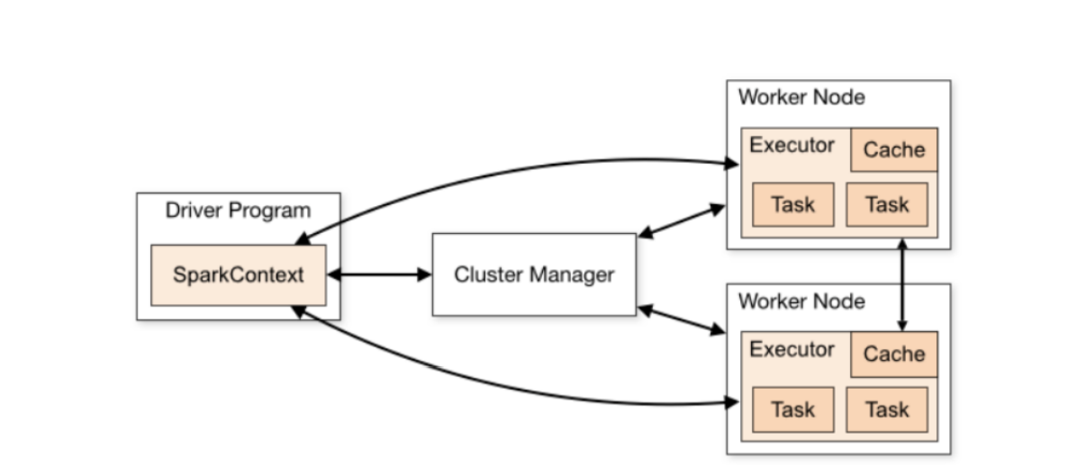 - Driver: ?个Spark作业运行时包括?个Driver进程,也是作业的主进程,负责作业的解析、?成Stage并调度Task到Executor上。包括DAGScheduler,TaskScheduler。