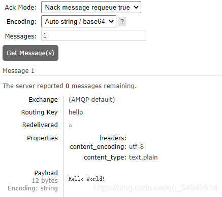 1)自动确认模式:当消息代理将消息发送给应用后立即删除。(使用 AMQP 方法:basic.deliver 或 basic.get-ok)) 2)显式确认模式:待应用发送一个确认回执后再删除消息。(使用 AMQP 方法:basic.ack)