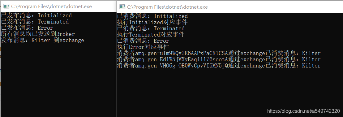 Console.WriteLine($"已发布消息:{message}");