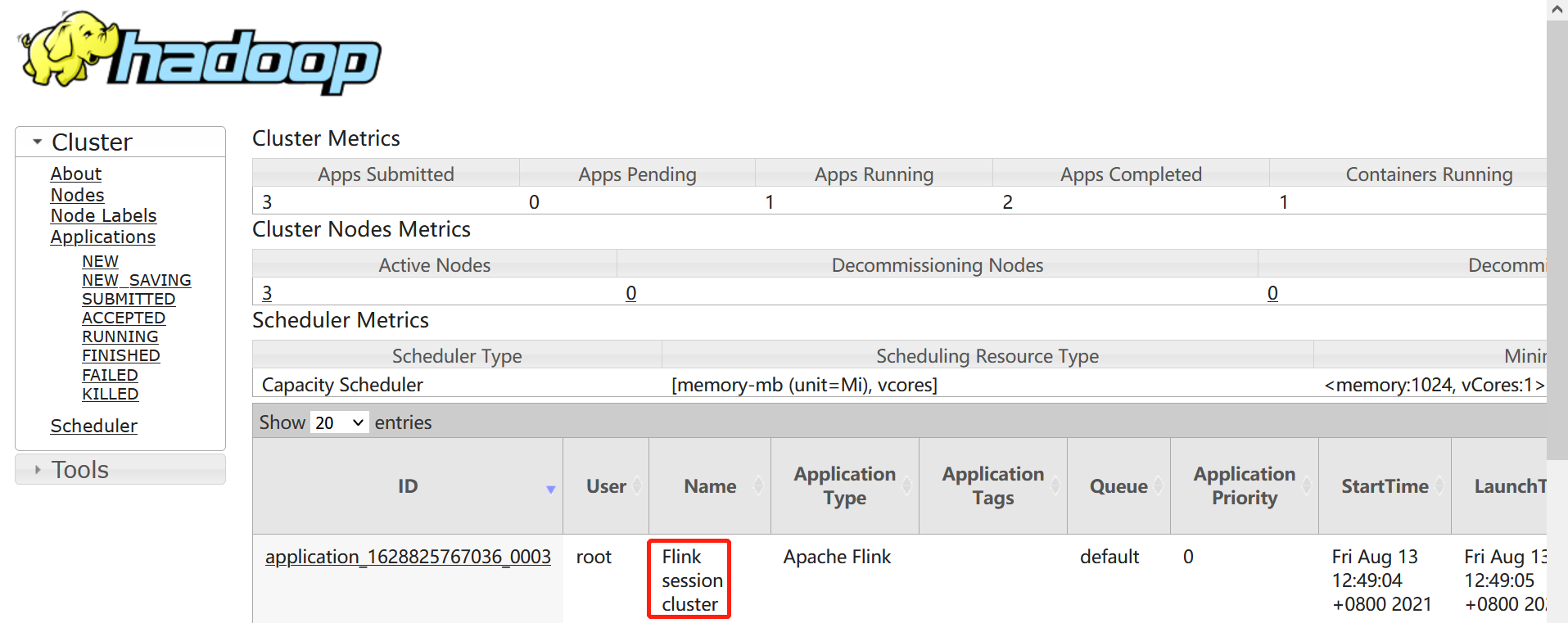 2021-08-13 12:49:12,218 INFO org.apache.flink.yarn.YarnClusterDescriptor [] - YARN application has been deployed successfully.