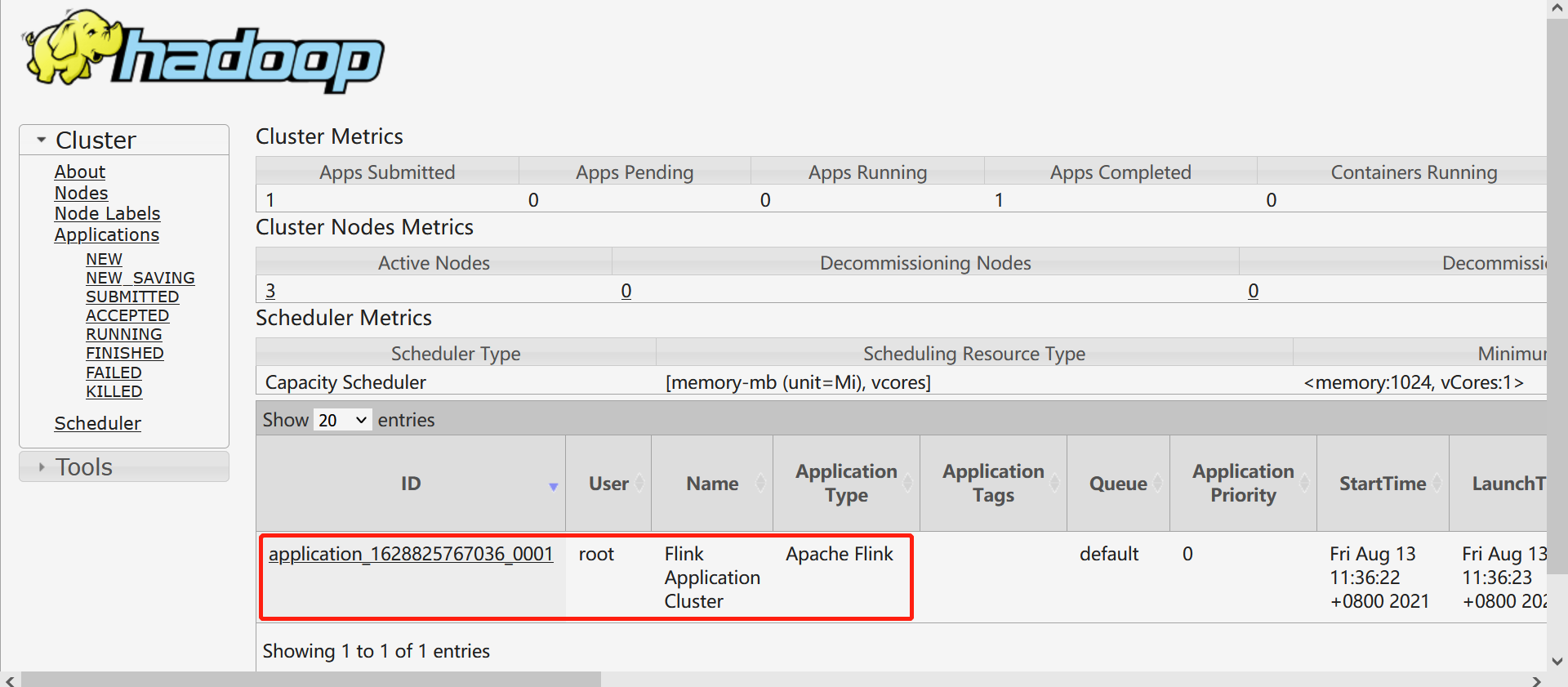 2021-08-13 11:36:23,245 INFO org.apache.hadoop.yarn.client.api.impl.YarnClientImpl [] - Submitted application application_1628825767036_0001