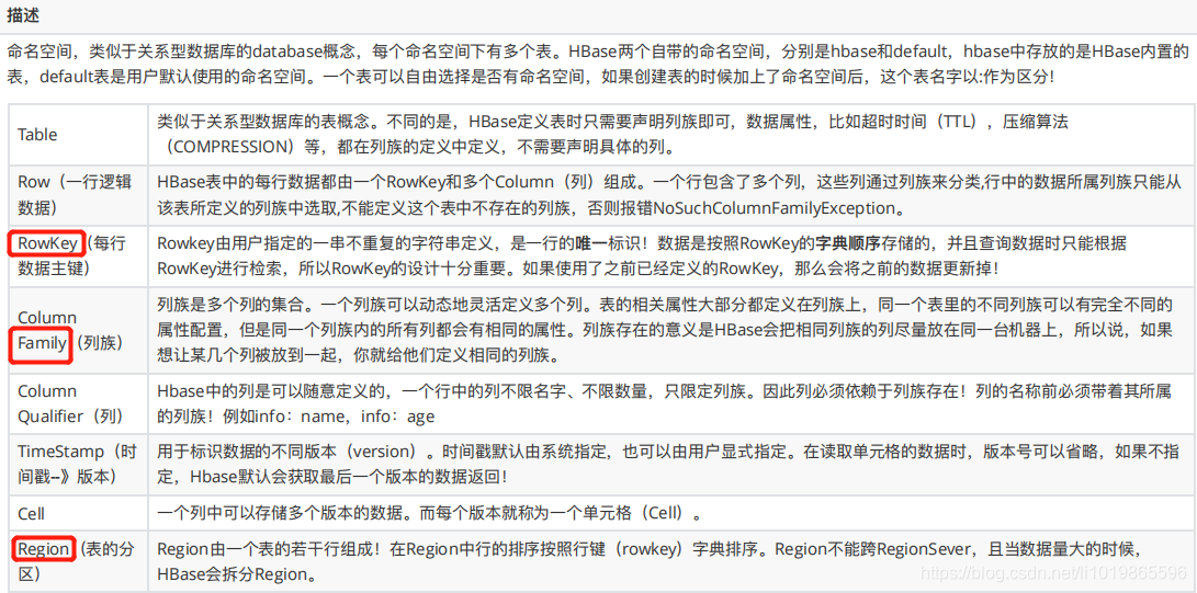 HBase里边也有表、行和列的概念。