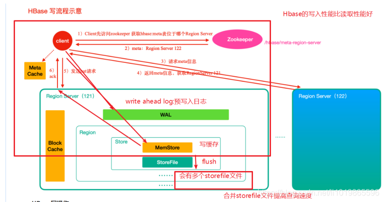 - Store里边有Men Store和StoreFile(HFile),其实就是先走一层内存,然后再刷到磁盘的结构