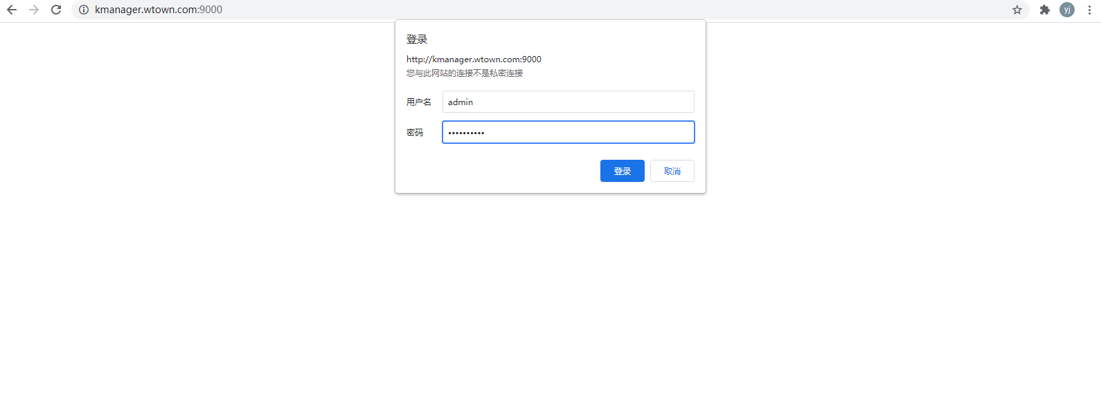 8、访问服务器9000端口 输入配置文件的用户名密码  9、添加集群   显示添加成功  10、界面介绍 topic页面   运行信息