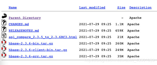 首先点击这里下载HBase,截止目前最新版本为2.3.6,下载那个 bin.tar.gz 结尾的