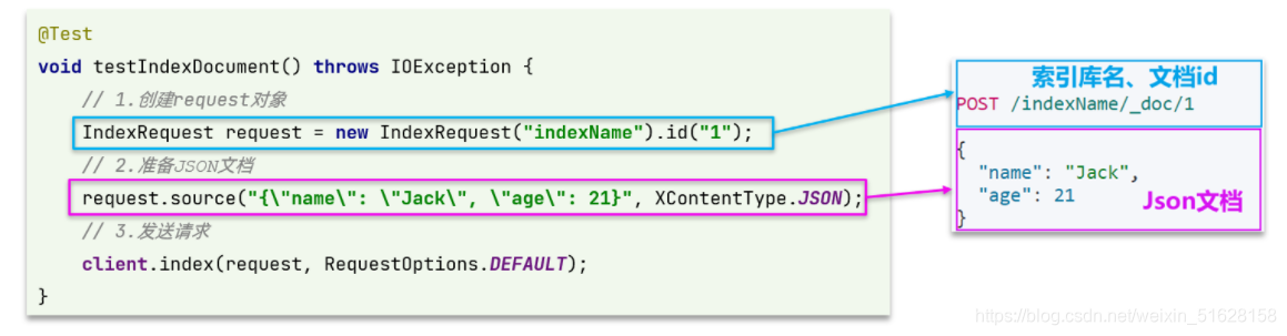 - 4)创建IndexRequest,指定索引库名和id