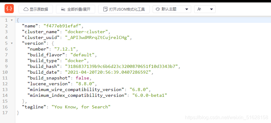 在浏览器中输入:http://192.168.150.101:9200 即可看到elasticsearch的响应结果: