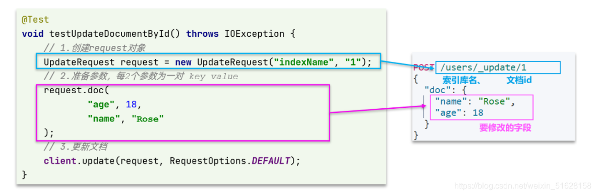 - 3)更新文档。这里调用client.update()方法