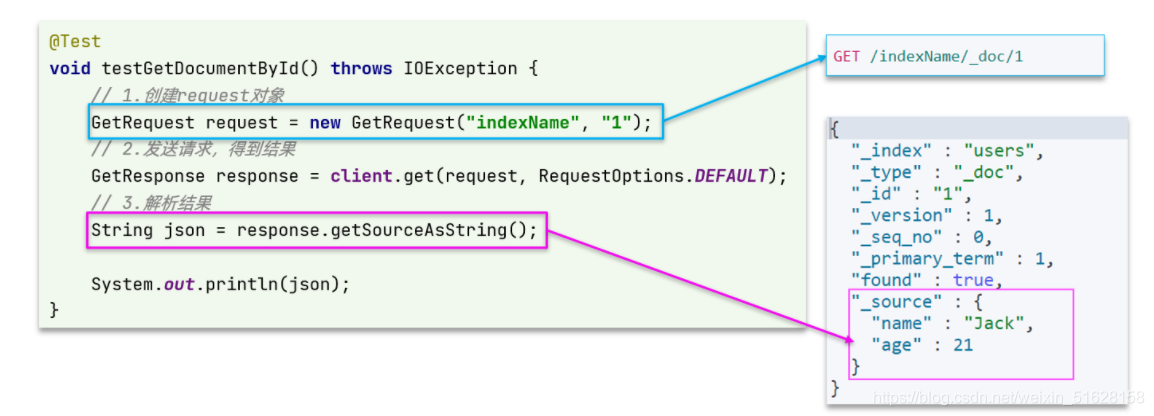 可以看到,结果是一个JSON,其中文档放在一个_source属性中,因此解析就是拿到_source,反序列化为Java对象即可。