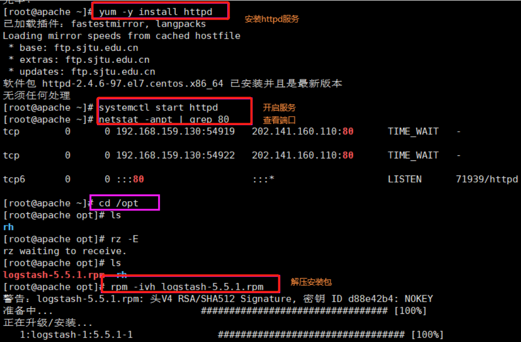 配置和安装ELK日志分析系统,安装集群方式,2个elasticsearch节点,并监控apache服务器日志