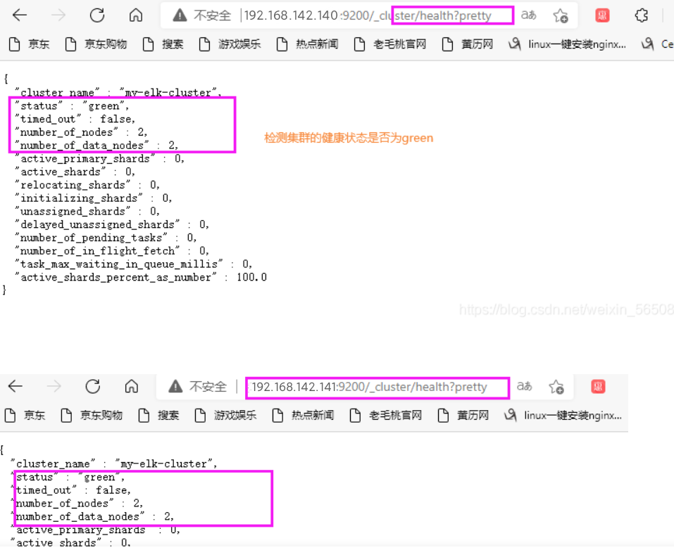 17 cluster.name: my-elk-cluster /定义集群名称,两node节点配置一致