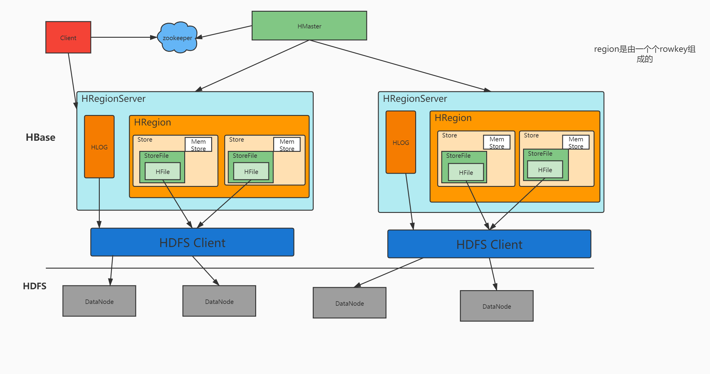 HLOG里面有 master、regionserver、wal(预写日志) -