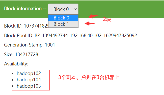 注意:上传到HDFS的文件,HDFS是按块大小划分,默认是128M,如果超过128M,将划分多块