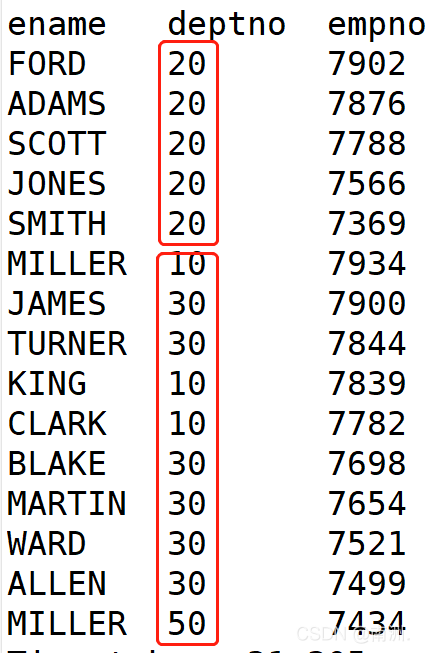 ename deptno