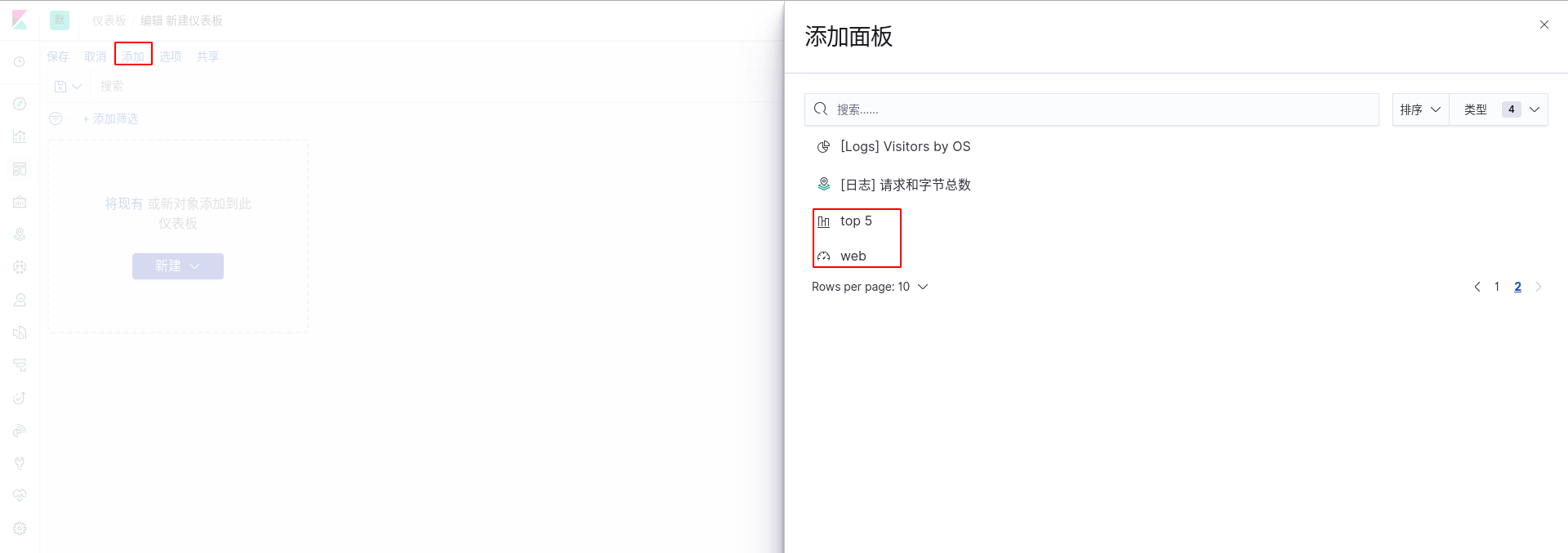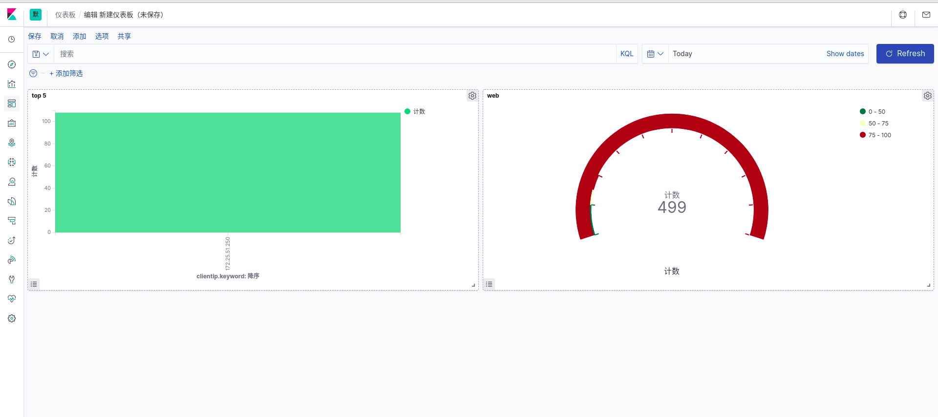 创建一个仪表板将上面保存的不同的图放到一起对比显示