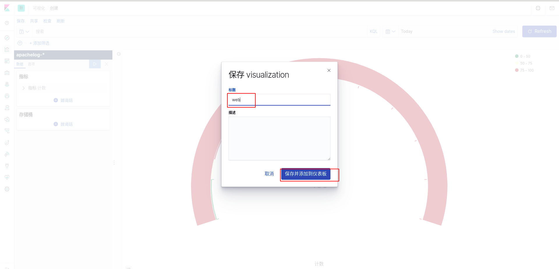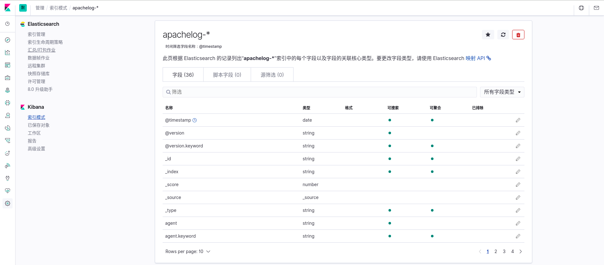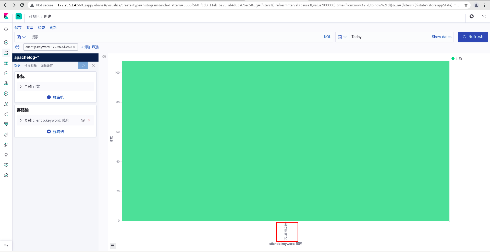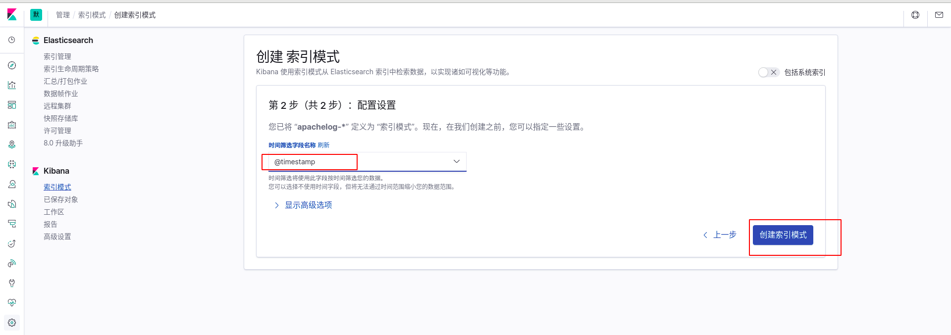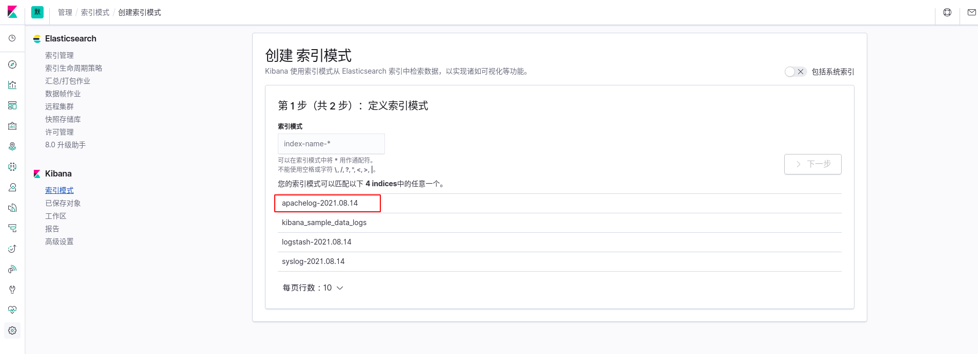创建索引  将es中的apache的索引筛选出来  创建了一个和apache的日志相关联的索引了  选择索引apachelog