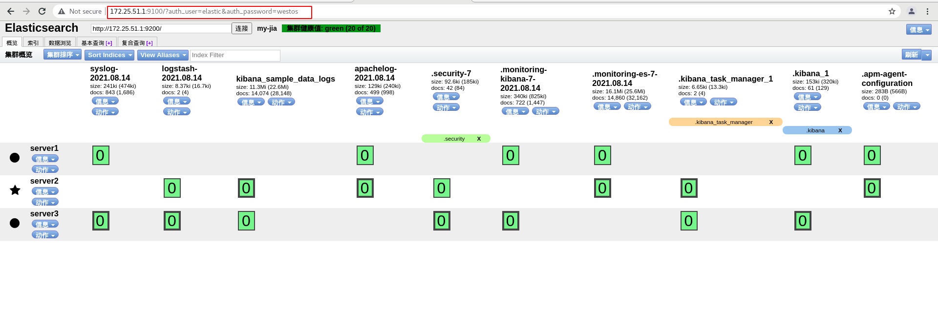 logstash端设置 server4,采集本机apache的数据时需要添加用户名和密码才可以正常运行采集